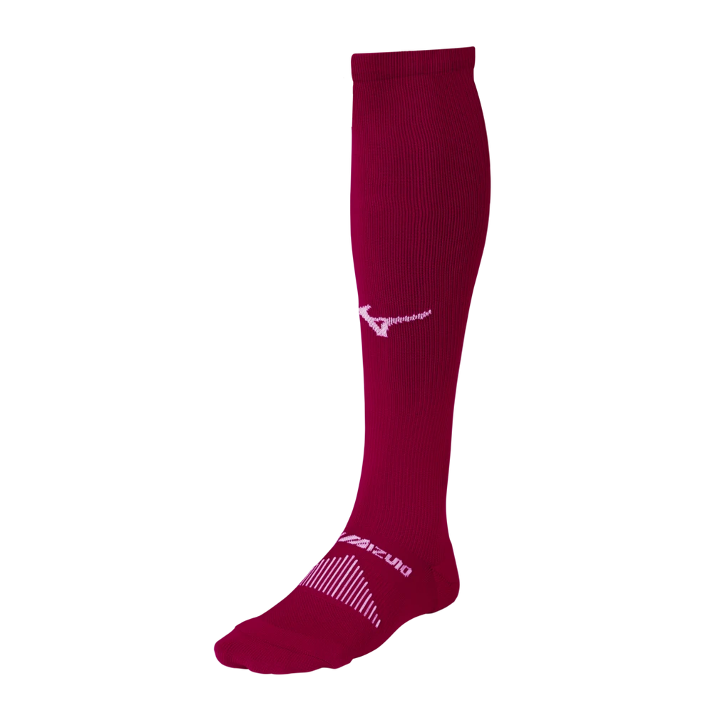 The Mizuno Performance OTC Sock 370230 is an elite-level athletic sock that made from a Polyester/Cotton/Polyurethane blend that combines to form a comfortable, form-fitting sock that is equipped to handle the constant pounding from athletes during intense play. Exclusive DryLite fabric supports better breathability while wicking moisture away from the foot to keep players cool and dry. Support knitting reinforces the ankle and arch of the foot to reduce unwanted stress on vulnerable areas in order to keep players on the court or field longer. This Knee-High sock comes in 8 unique color patterns that are able to match team colors or personal preferences.