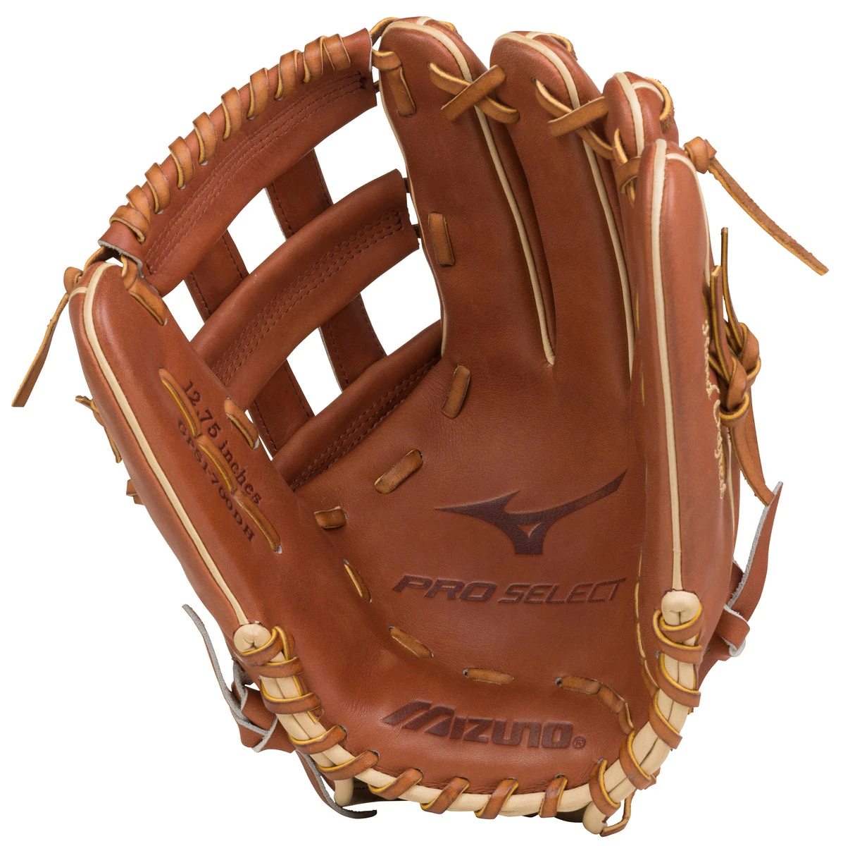 The Mizuno company is renown for producing some of the most clutch gloves in the industry. Their H webbed, Pro Select series 12.75 Outfielders Glove is no exception. This model is much bigger than some of the infield gloves a player might have had in the past. The simple presence of much more area and gloving can certainly increase one s defensive prowess. Especially since its still as light-feeling as smaller sized gloves, the player who wears it is bound to have a fielding percentage that hovers up near the 1.000 mark all year long. From “palm shot,” to “web gem,” to “snowcone,” the glove will preserve any fielder s reputation. It will also preserve the pitcher s ERA, and most importantly, any team s clear path to victory. So buy your Mizuno Pro Select GPS1 700DH 12.75 Outfield Baseball Glove from Baseball Bargains today and your Gold Glove career will officially begin!